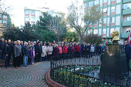 Atatürk büstünü çiçek bahçesine çeviren Site sakinleri, her 10 Kasım’da anma töreni düzenlenmesinden memnun olduklarını belirttiler. (10.11.2018)