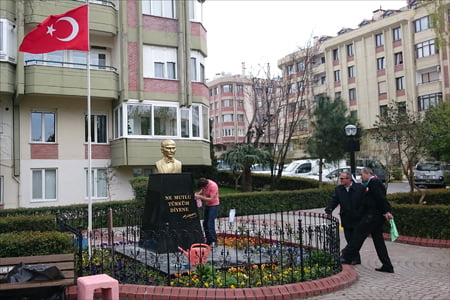 Sarıyer Belediyesi Park ve Bahçeler Müdürlüğü ekipleri, büstün çevresindeki demirleri de boyattı, ayrıca etrafına çiçekler dikti. (23.03.2016)